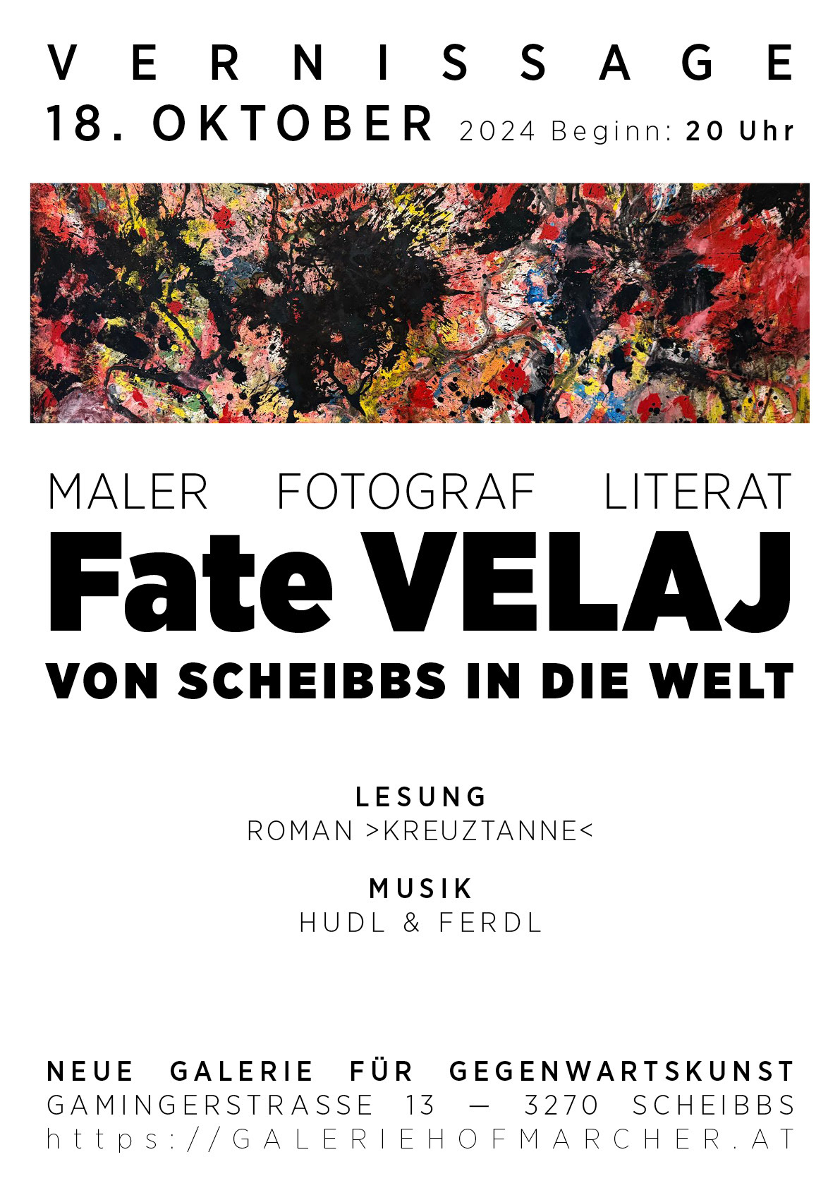 Fate Velaj, 1963 in Vlora/Albanien geboren, kam 1991 als Flüchtling nach Traiskirchen. Er lernte Deutsch, verdingte sich mit Gelegenheitsjobs, widmete sich erst nebenbei und später hauptberuflich der Kunst, eroberte den legendären Aktionskünstler Hermann Nitsch, dessen Werk ihn heute noch inspiriert („Nitsch war mein Mentor“), studierte an der Angewandten in Wien, besuchte jede Menge Veranstaltungen und Vorträge, wo er stets Gescheites zu sagen hatte und man immer öfter auf den brillant argumentierenden jungen Mann aufmerksam wurde.